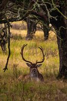 Damhert in de Amsterdamse Waterleidingduinen tussen de bomen de herfst.