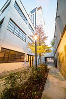 Naast de Boekentoren van Gent in een steeg ,staat er een mooie boom die zijn bladeren aan het verliezen is tijdens de herfst