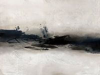 Abstract landschapschilderij met zwarte en donkerblauwe tinten