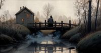 Een eenzame man staat stil op een houten bruggetje terwijl onder hem de mist optrekt over een kalme rivier. In het warme licht van de avond ligt een afgelegen huis, omringd door kale bomen en glooiende heuvels. Dit sfeervolle kunstwerk combineert eenzaamheid, hoop en innerlijke contemplatie en creëert een sfeer van troost, stilte en…