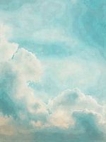 De vormen zijn vluchtig, als herinneringen die blijven drijven. Zachtblauwe tonen mengen met warm wit, zonder elkaar te verdringen.