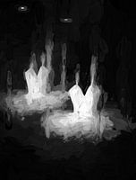 Zwart-wit impressionisme met grove penseelstreken op canvas.
