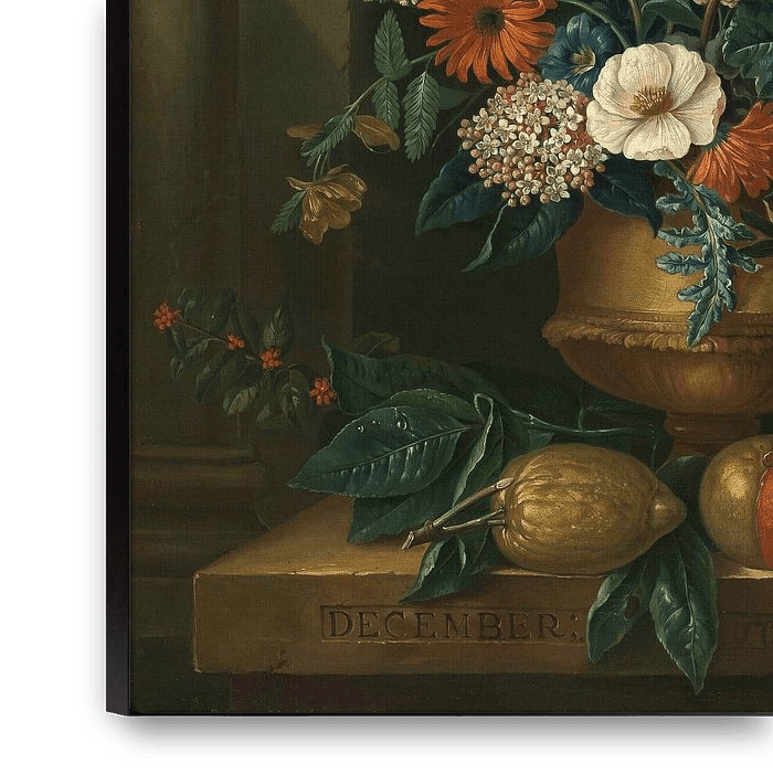 Koop Twaalf maanden bloemen: December, Jacob van Huysum als reproductie op canvas, aluminium dibond, (ingelijste) fotoprint, behang en ArtFrame, op maat geprint in Fine-Art kwaliteit.