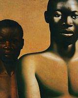 Portret van twee jongens. Ze zijn van Afrikaanse afkomst en kijken de kijker vertwijfeld aan. Wat er in hun hoofd omgaat, dat is de vraag die de kijker naar eigen inzicht kan beantwoorden.