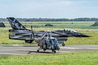 Twee demonstratieteams van de Belgische Luchtmacht zijn in 1 beeld vastgelegd. Het zijn het F-16 demo team, Dark Vador en het Agusta A 109 deonstratieteam.