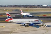 Twee British Airways Airbus A319-100's op Düsseldorf.