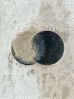Een rustgevend ontwerp met twee cirkelvormen in subtiele, neutrale tinten. De balans tussen licht en donker geeft een moderne, kalme uitstraling.