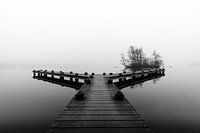 De vlonder bij de Amstelveense Poel splitst zich op in twee paden die eindigen in een mistig meerl