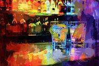 Creëer een sfeervolle ambiance met deze unieke print van twee klassieke glazen op een bar, perfect voor je moderne slaapkamer of kantoor.