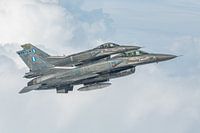 Twee General Dynamics F-16 Fighting Falcons van de Griekse luchtmacht (het F-16 "Zeus" Demo Team) air-to-air gefotografeerd.