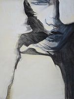 Tekening in zachte pastel en houtskool van twee mannen met een ander perspectief.
