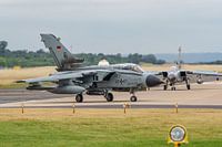 Twee Panavia Tornado's van de Duitse luchtmacht vlak voor het vertrek gefotografeerd aan de kop van de startbaan. Deze toestellen zijn afkomstig van Fliegerhorst Buchel in de Eifel en zijn tijdelijk op Fliegerhorst Nörvenich gestationeerd vanwege verbouwingswerkzaamheden.