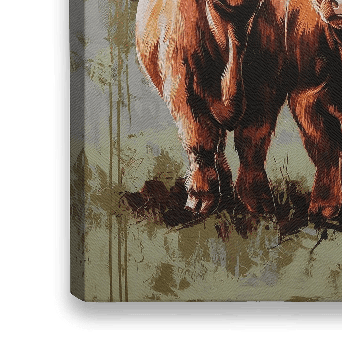 Deze schilderachtige weergave van twee Schotse hooglanders straalt warmte en charme uit. De prachtige bruine tinten van de dieren contrasteren subtiel met de gouden accenten en de rustgevende groenige achtergrond. Perfect voor in een woonkamer of eetkamer, brengt dit kunstwerk een gevoel van natuur en rust in uw ruimte. Met een mix van…