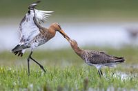 Vandaag had ik het geluk om een bijzonder moment vast te leggen: twee grutto's die verwikkeld zijn in een felle strijd. Deze elegante weidevogels, bekend om hun lange snavels en sierlijke vlucht, gingen elkaar in een open veld te lijf. Hun vleugels klapten in de lucht en hun scherpe kreten doorbraken de stilte, wat een indrukwekkend schouwspel opleverde. Het was een unieke kans om een kijkje te nemen in het sociale leven van deze prachtige vogels en te zien hoe ze hun territorium verdedigen. Het fotograferen van dit moment vereiste veel geduld, kennis van vogelgedrag en de juiste uitrusting. Met mijn telelens kon ik de actie van dichtbij volgen zonder de vogels te storen. Een snelle sluitertijd en de juiste belichting waren cruciaal om de bewegingen scherp en gedetailleerd vast te leggen. Deze foto is een perfecte herinnering aan de dynamiek van de natuur, en ik hoop dat hij anderen inspireert om ook naar buiten te gaan en de wonderen van het dierenrijk te ontdekken.