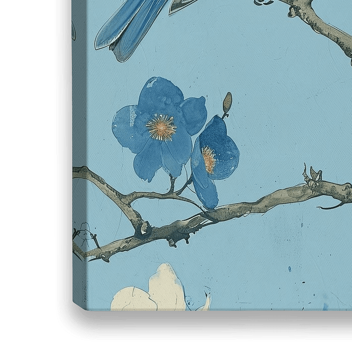 Minimalistische dierenkunst met vogels in blauwe tinten.