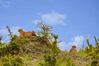 Twee jachtluipaarden in de vroege ochtend in de Okavango Delta, Botswana/Zuid-Afrika