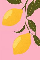 Deze minimalistische afbeelding van twee citroenen is bijna abstract en overtuigt vooral door de kleuren - geel op roze - en de patronen. Als je van minimalistische illustraties houdt en toch een vleugje mediterraan op je muur wilt, dan is deze illustratie echt iets voor jou.