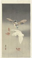 Twee duiven bij vallende ginkgo bladeren, Ohara Koson, 1900 - 1930