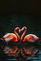 Twee felgekleurde flamingo’s in donkere water van Art & Soul Creations