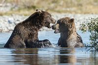 Grizzly beren vechtend in het het water