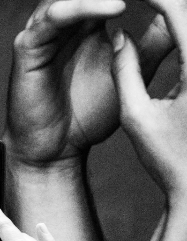 Op een expositie was ik gefascineerd door de compositie van de twee gracieuze handen van Erwin Olaf. De fotograferende bezoeker die dit vastlegde op zijn mobiel vond ik een mooie en passende combinatie.