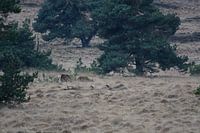 Ik heb deze foto met twee herten in de natuur gemaakt uit een wildobservatie hut op de Veluwezoom gemaakt. Deze hut staat op een hoog punt van de Veluwezoom met uitzicht over een grasland met een aantal bomen, het is namelijk de Elsberg waar deze observatiepunt staat. Op de foto zie je twee herten beetje verscholen tussen het gras. Ik ben blij dat de herten niet achter de bomen stonden te grazen. De bomen zijn grove dennen, een boomsoort wat je vaker op de Veluwe ziet. Ik vind het een typisch beeld van de Veluwe.