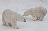 Koop de foto Twee ijsberen - mannetjes en vrouwtjes die imposant op de sneeuw liggen. van Michael Semenov op canvas, aluminium dibond, (ingelijste) fotoprint, behang en ArtFrame, op maat geprint in Fine-Art kwaliteit.