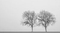 In een verstild landschap tekenen twee bomen zich af tegen een zachte waas van mist. De minimalistische compositie legt de nadruk op ruimte, balans en stilte. Door het ontbreken van afleiding ontstaat een beeld dat rust brengt en uitnodigt tot vertraging.