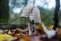 Deze twee inktzwammen kwam ik tegen in het bos. De foto is laag bij de grond gemaakt en door de wazige achtergrond komen de inktzwammen mooi uit. De foto is gemaakt bij de Amsterdamse waterleidingduinen in Nederland.