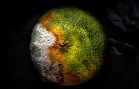 Rotte bergamotvrucht op zwarte achtergrond met wat schimmels erop.