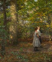 Koop Twee kinderen met een kraai in het bos, Willem Bastiaan Tholen als reproductie op canvas, aluminium dibond, (ingelijste) fotoprint, behang en ArtFrame, op maat geprint in Fine-Art kwaliteit.
