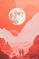 Two Men Contemplating the Moon van Caspar David Friedrich is een iconisch werk uit de Romantiek dat de auteur inspireerde tot dit werk. Het originele romantische schilderij belichaamt het romantische idee van natuur en transcendentie. De twee mannen die naar de maan staren symboliseren het menselijke verlangen naar het oneindige en het…