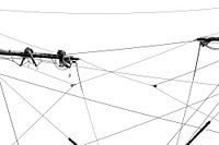 Twee matrozen hangen in de ra van een schip tussen alle touwen. Foto is gemaakt op een van de Sail dagen in Harlingen. Lijkt veel op een trapeze act. Wout Kok One2expose.