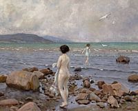 Paul Gustave Fischer (1860-1934) was een Deense schilder van de schilderschool van Kopenhagen. Hij was aanvankelijk autodidact, maar studeerde later aan de Koninklijke Deense Academie voor Schone Kunsten. Fischer stond bekend om zijn stadsgezichten, portretten en genrescènes en schilderde levendige voorstellingen van het stadsleven in Kopenhagen. Zijn werken, gekenmerkt door realisme en impressionisme, leggen subtiele sferen en alledaagse momenten vast. Fischer leverde een belangrijke bijdrage aan de Deense kunstgeschiedenis.
