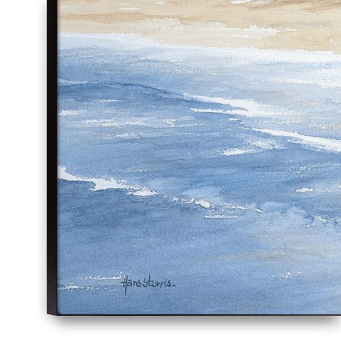 Koop dit landschapskunstwerk Twee mensen wandelen langs het Nederlandse Noordzee strand en de duinen. - Aquarel - Hans Sturris van Galerie Ringoot op canvas, aluminium dibond, (ingelijste) fotoprint, behang en ArtFrame, op maat geprint in Fine-Art kwaliteit.