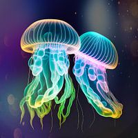 Koop dit abstracte kunstwerk Twee neon kwallen van Digital Art Nederland als print op canvas, aluminium dibond, (ingelijste) fotoprint, behang en ArtFrame. Voor jou op maat geprint in Fine-Art kwaliteit.