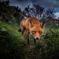 Een vos volgt zijn pad in de Amsterdamse waterleidingduinen in Noord-Holland, Nederland
