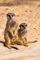 Twee stokstaartjes ( Suricata suricatta ) in Zuid-Afrika.
