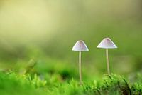 Het bos was bezaaid met dit soort kleine paddenstoeltjes. Deze twee stonden mooi naast elkaar.