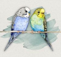 Koop dit vogel kunstwerk Twee schattige grasparkietjes aquarel van Bianca Wisseloo als print op canvas, aluminium dibond, (ingelijste) fotoprint, behang en ArtFrame. Voor jou op maat geprint in Fine-Art kwaliteit.