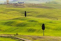 Typisch groene landschap met eenzame cipressen in het glooiende Toscane
