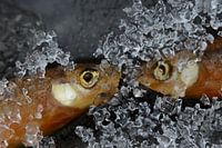 Koop dit stilleven Twee vissen in ijs van Mascha de Lange op canvas, aluminium dibond, (ingelijste) fotoprint, behang en ArtFrame, op maat geprint in Fine-Art kwaliteit.
