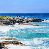 Moin, moin... makkelijk te raden, ik ben een Noord-Duitse kunstenaar. De Noordzee is heel dichtbij, dus er zijn altijd waterelementen in mijn schilderijen. Dit laatste is te vinden in het origineel aan de andere kant van de wereld. Laat je gewoon vallen in een wereld van kleuren.