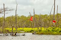 Koop dit vogel kunstwerk Twee vliegende rode ibissen in Bigi Pan in Suriname van Patricia Hofmeester als print op canvas, aluminium dibond, (ingelijste) fotoprint, behang en ArtFrame. Voor jou op maat geprint in Fine-Art kwaliteit.