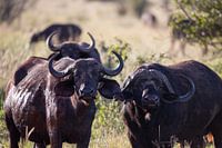 We hebben vier dagen doorgebracht op een onvergetelijke safari in Kenia. Drie dagen in de nationale parken Tsavo East en West en later in de Taita Hills. De parken waren zeer verschillend, terwijl Tsavo East bekend staat om zijn rode aarde, rode olifanten en steppe in een vlak landschap, heeft Tsavo West ook bergen met zware vegetatie, roofkatten en neushoorns. In de Taita Hills vind je een savanneachtig landschap met bergen op de achtergrond, ook mijn favoriet voor wildlife foto's. Bij de evenaar is het moeilijk fotograferen, vooral als je close-ups probeert te maken van wildlife zoals ik doe. De lichtomstandigheden veranderen snel en zijn ook heel anders. Dieren en voertuigen bewegen. Je moet dus snel zijn en werken met de belichtingstijden. Uiteindelijk ben ik er goed in geslaagd precies deze unieke sfeer van wilde dieren vast te leggen. Hier zie je waterbuffels in de ochtend