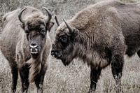 Koop de foto Twee wisenten (Europese bizons) naast elkaar in de Kennemerduinen van Melissa Peltenburg als print op canvas, aluminium dibond, (ingelijste) fotoprint, behang en ArtFrame. Voor jou op maat geprint in Fine-Art kwaliteit.