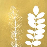 Botanische illustratie in vintage stijl Twee witte takken monotype op gouden achtergrond. Scandinavische, Basic, Romantische interieurstijl.
