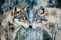 Dit indrukwekkende schilderij toont twee wolven in een intense, symbolische ontmoeting. De expressieve penseelstreken en de subtiele mix van grijze, witte en blauwe tinten geven het werk een rauwe maar verfijnde uitstraling. Perfect voor liefhebbers van natuur en wilde dieren, dit kunstwerk brengt een krachtige en tegelijkertijd serene sfeer in elke ruimte. Ideaal om op te hangen in een woonkamer of kantoor waar het als blikvanger kan fungeren. Een uitstekende keuze voor wie modern design wil combineren met een natuurlijke en betekenisvolle uitstraling.