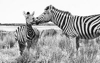 Twee zebra's, moeder met jong in Etosha, Namibië. Wildlifefotografie.