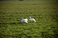Twee zwanen op een weiland in Emsland van Bianca Meyering Fotos - BMF